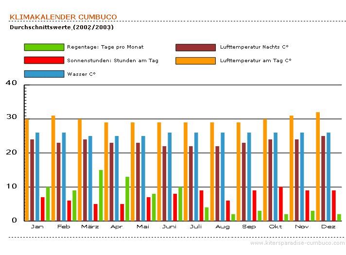 Die Grafik zeigt das durchschnittliche Klima eines Jahres. Alles Angaben sind ohne Gewehr.
